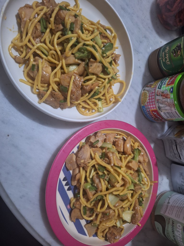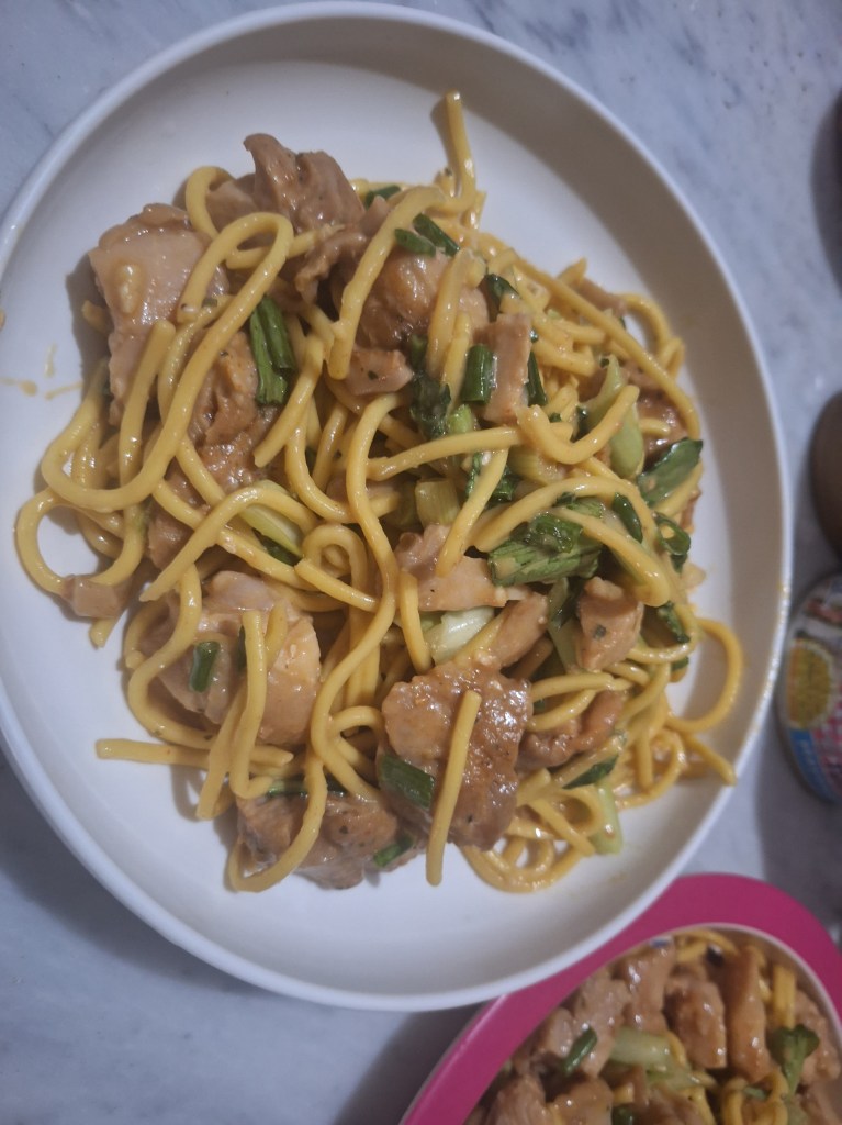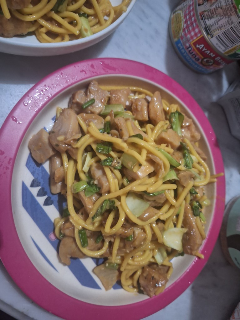 add noodles and spring onions.